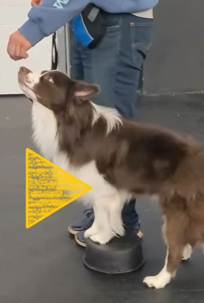 “Obedience Level 3 working on their ‘rear end’ awareness to turn in a heel. This is super tough to learn but I think they are all doing great!” — Julie