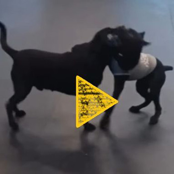 Nico (black lab) was showing B.J. (cane corso puppy) the ropes at Boot Camp. Nico is a seasoned tug-o’-war player and is always looking for a good challenge from the Boot Camp rookies! Boot Camp and Daycare is available M-F 7am-6pm. Click here for full details on Boot Camp.